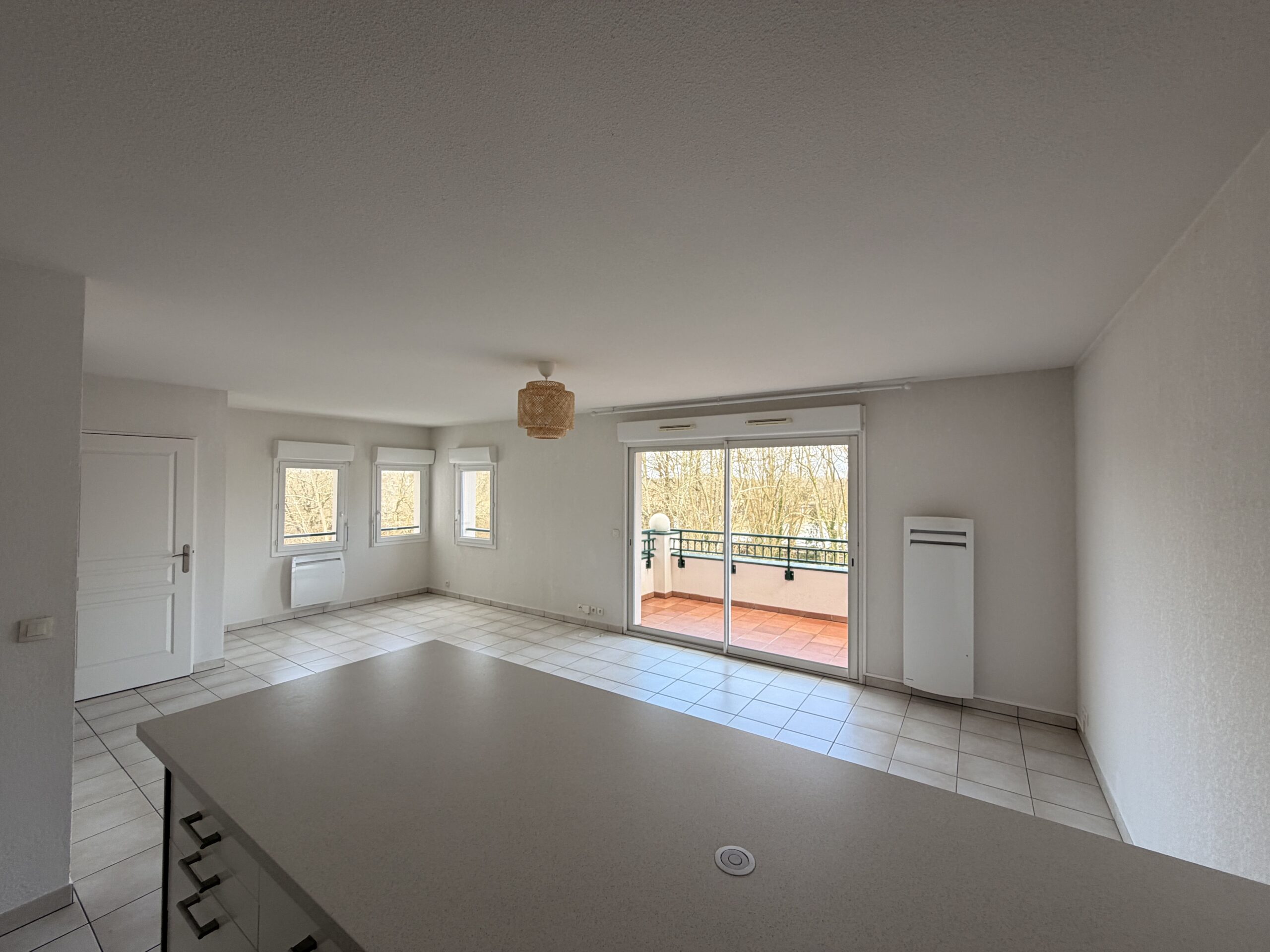 L’appartement se compose d’une entrée avec placard, une très belle pièce de vie lumineuse donnant sur une terrasse