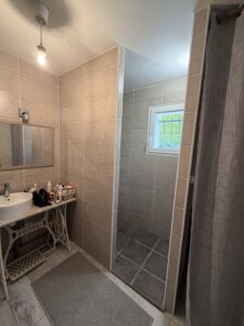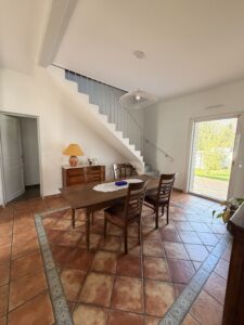 À l’étage, une spacieuse mezzanine apporte un véritable cachet à la maison et dessert une troisième chambre, idéale pour un espace nuit, un bureau ou une salle de jeux.