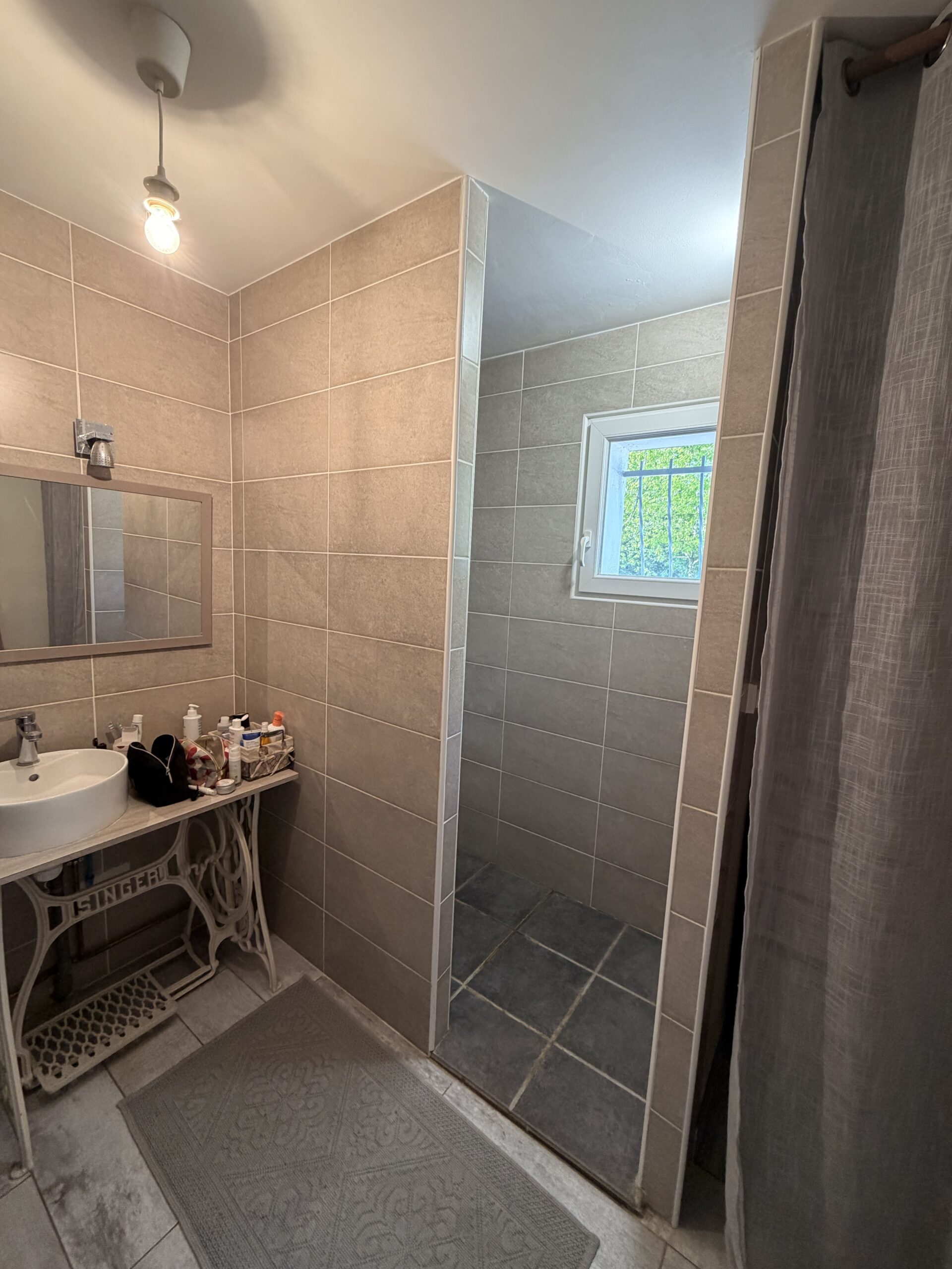 et équipée, de deux chambres dont une avec de grands rangements, d’une salle d’eau, commodités séparées.